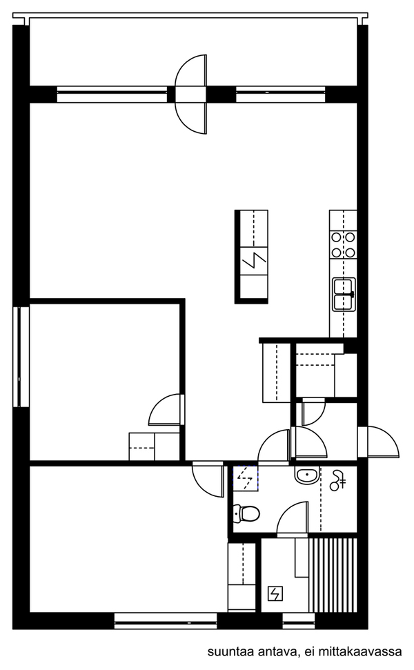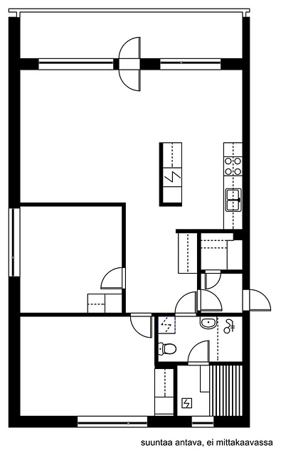 - Suihku, wc-istuin, lattialämmitys, peilikaappi, pesukoneliitäntä, suihkuseinä, ja kiinteät valaisimet