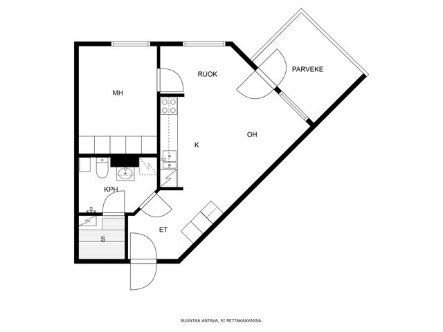 Yhtiöjärjestyksen mukaan huoneisto käsittää 2h+kk+s.