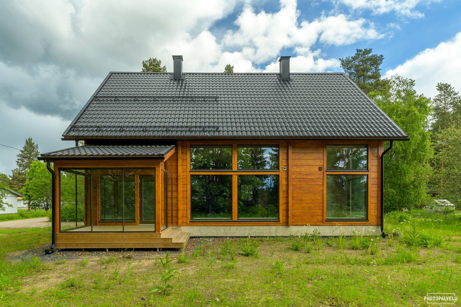 Kontion massiivihirrestä (ulkoseinät ovat SmartLog™ 205x275 painumaton hirsi) rakennettu ekologinen yksilöllinen koti. Upea, 3.6 metrin huonekorkeus ja suuret ikkunat luovat avaruutta ja tunnelmaa. Lämpöä tuottaa Tulisijamestareiden varaava takka. Noblessa-keittiö ja massiivityötasot keittiössä. Kylpyhuoneessa seinässä ja lattiassa upeaa ja näyttävää italialaista lasimosaiikkia. Lämmityksen tukena kaksi Panasonic-ilmalämpöpumppua. Talon kerrosala on 104 m2. Rakennuttajana laadustaan tunnettu VieskaKoti. Rakennusoikeutta runsaasti vielä jäljellä.