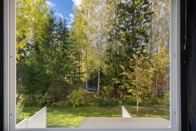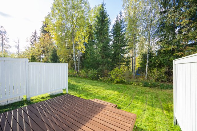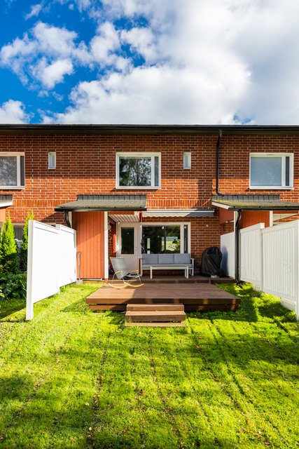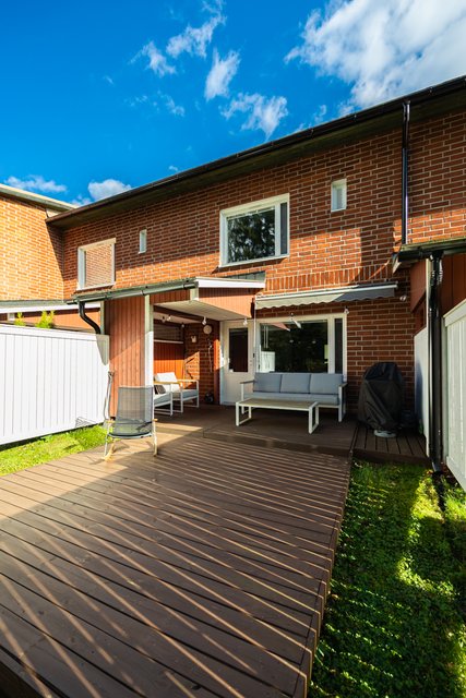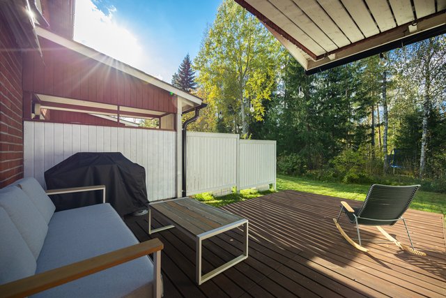 Metsäpalstaan rajoittuva takapiha tuo oman rauhan ja muutenkin kivan kokoinen terassi/piha-alue toimii loistavana ajanviettopaikkana.