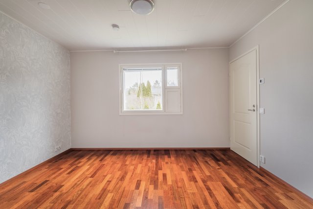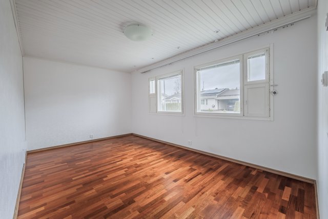 - Yksi makuuhuoneista on muutettu työhuoneeksi, tässä huoneessa on vinyylilattia