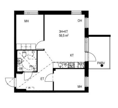 3h+avok+kph+lasitettu parveke (Yj 3h+kt)