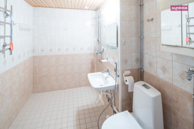 - WC-istuin, suihku, pesukoneliitäntä, peili, peilikaappi, ja bidee-suihku