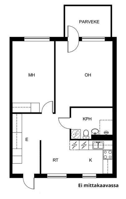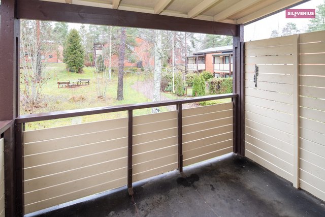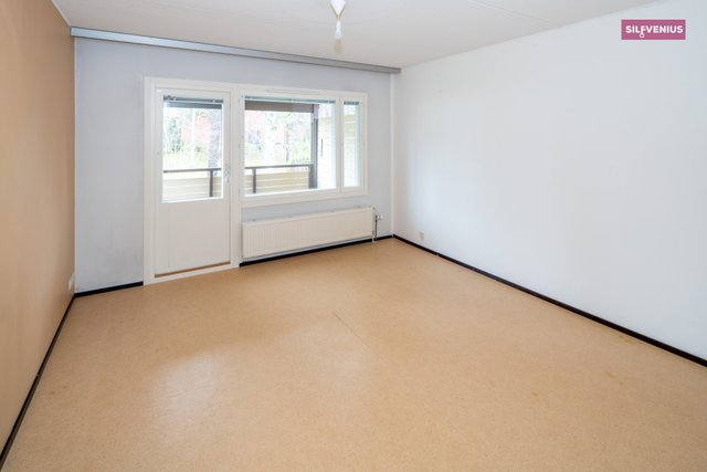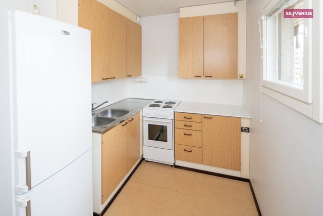 Asunnossa on tilava olohuone, erillinen keittiö ja makuuhuone, jotka luovat viihtyisän kokonaisuuden. Parveke avautuu luoteeseen, tarjoten mukavan paikan nauttia ilta-auringosta. Keittiössä on jääkaappi-pakastin ja laminaattitasot, jotka tuovat käytännöllisyyttä arkeen. Kylpyhuoneessa on pesukoneliitäntä, ja asunnon yleisilme on tyydyttävässä kunnossa.