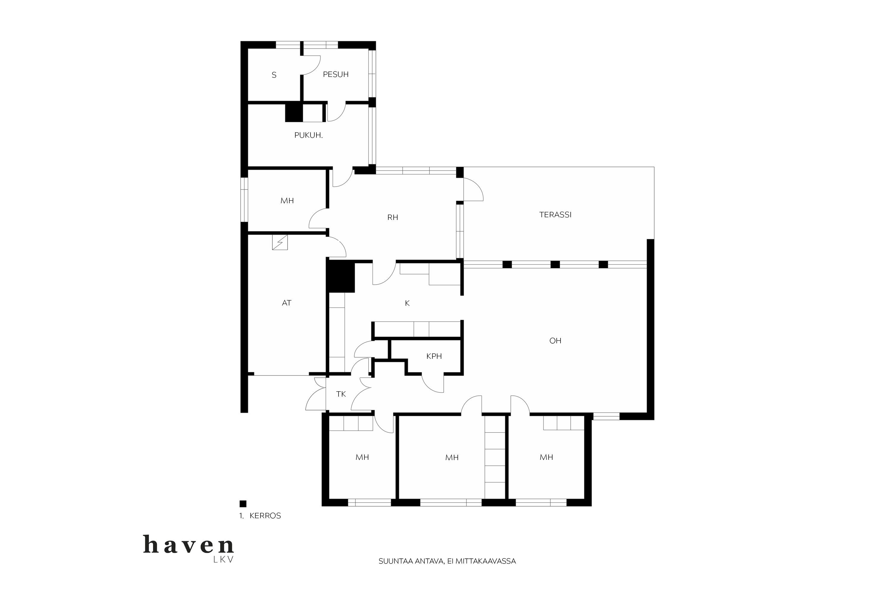Talon sydän on tilava olohuone, jossa suuret ikkunat tulvivat valoa tilaan. Keittiö on hyvin varusteltu, ja sieltä löytyy muun muassa kaasuliesi sekä kivitasot. Asunnon pohjaratkaisu on yksikerroksinen, mikä tekee siitä käytännöllisen ja helppokulkuisen.