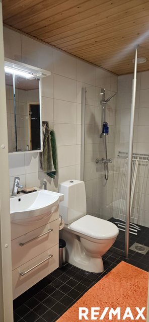 - WC-istuin, suihku, pesukoneliitäntä, lattialämmitys, peilikaappi, allaskaappi, ja bidee-suihku