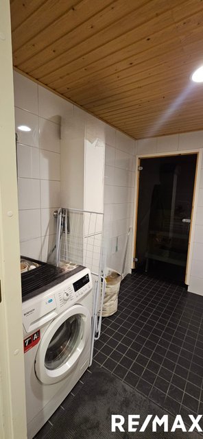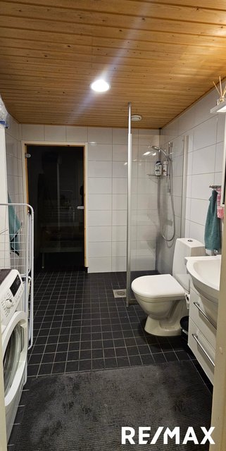 - WC-istuin, pesukoneliitäntä, lattialämmitys, peilikaappi, allaskaappi, ja bidee-suihku