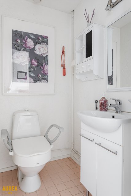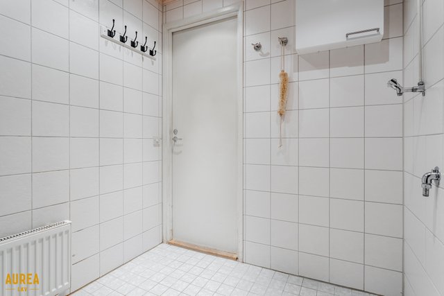 - Kylpyhuone on emontoitu 2015. Vaaleansävyinen kylpyhuone jossa tehostelaatoitus antaa ilmettä tilaan. Pyykinpesutornille löytyy paikka.