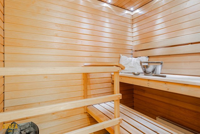 - Saunassa on siistkuntoiset vaaleat lauteet ja sähkökiuas.