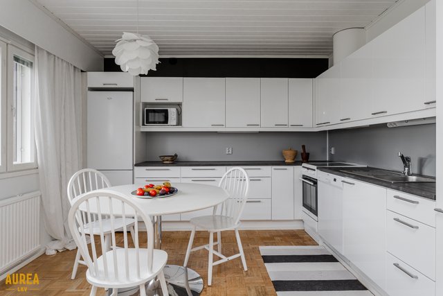 - Keittiöremontti valmistunut 2015. Varusteet: Jääkaappi/pakastin, keraaminen liesi, astianpesuokone, harmaat laminaattitasot, kiitävät valkoiset ovet.