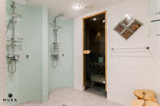 - Varustelu: 2 sadesuihkua, lattialämmitys ja kiinteät valaisimet. Seinät ja lattia laatoitettu.