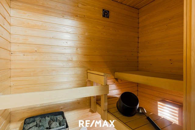 Kaksi makuuhuonetta tarjoavat rauhalliset tilat levätä, ja oma sauna tarjoaa rentoutumishetkiä kiireisen päivän jälkeen.
