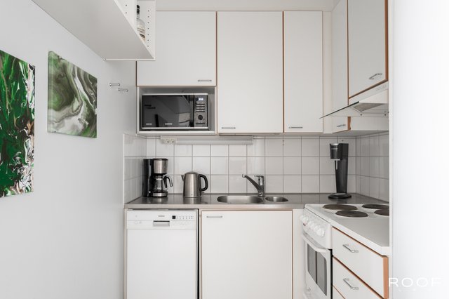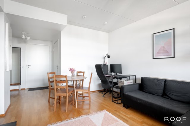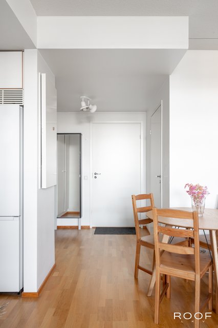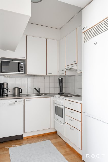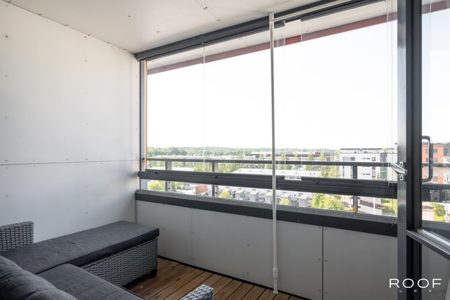 Tässä kodikkaassa asunnossa yhdistyvät avokeittiö ja olohuone mukavaksi oleskelutilaksi. Makuuhuoneessa on koko seinän mittainen kaapistoratkaisu, joka tarjoaa runsaasti säilytystilaa. Tilava kylpyhuone mahdollistaa myös pyykinpesukoneen sijoittamisen. Asunnon helmenä on tilava ja suojaisa parveke – täydellinen paikka rentoon oleskeluun. Nauti ylimmän kerroksen rauhasta ja yksityisyydestä!