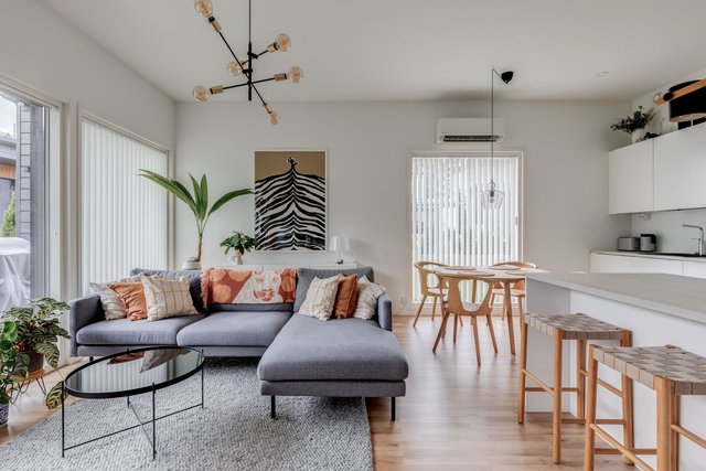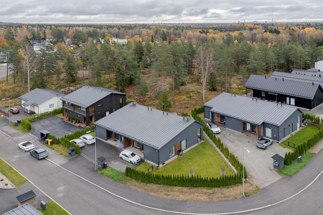 Lintumetsän rauhallisessa ja halutussa asuinalueessa Espoon Lintuvaarassa sijaitsee tämä upea ja valoisa paritalo. Vuonna 2021 valmistunut koti tarjoaa modernia asumista yhdessä tasossa, ja se on erinomaisessa kunnossa. Talo on rakennettu kestävistä puumateriaaleista, ja sen energiatehokkuus on huippuluokkaa (energialuokka B2018), mikä näkyy myös edullisissa lämmityskustannuksissa. Lämmitysmuoto on vesikiertoinen lattialämmitys poistoilmalämpöpumpulla.