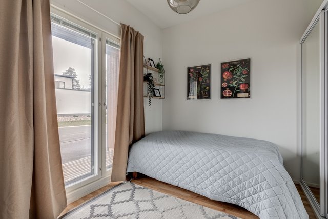 Kolme makuuhuonetta tarjoavat mukavasti tilaa perheelle tai vieraille. Kylpyhuoneessa on lattialämmitys ja modernit varusteet, ja oma sauna tarjoaa rentouttavat löylyt. Lisäksi kodinhoitohuoneessa on tilaa pyykinpesukoneelle ja kuivausrummulle.