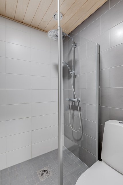 - WC-istuin, suihku, suihkuseinä, ja lattialämmitys