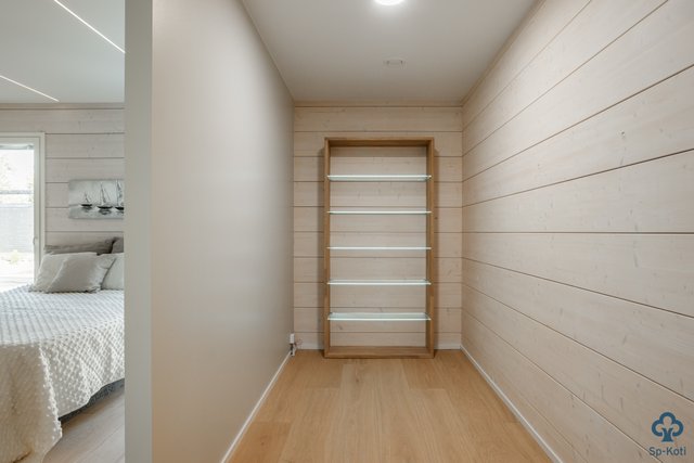 - Eteisessä liukuovikaapisto, yhdessä makuuhuoneessa iso vaatehuone ja autokatoksen yhteydessä iso lämmin varasto.