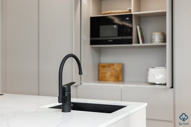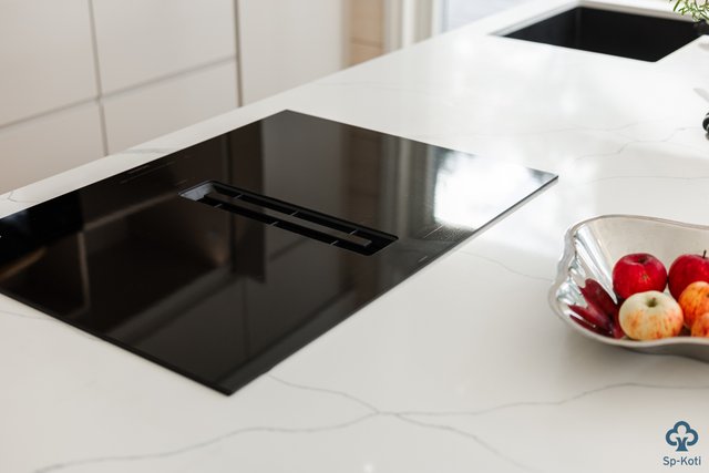 - Laadukkaat Siemensin integroidut kodinkoneet. Aamiaiskaappi, korkeat jääkaappi ja pakastin, induktioliesitaso liesituulettimella, kalusteuuni, astianpesukone ja mikro. Lattia Novafloor Harder kovapuulattia ja seinät vahattu sekä maalattu.