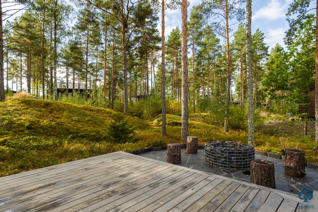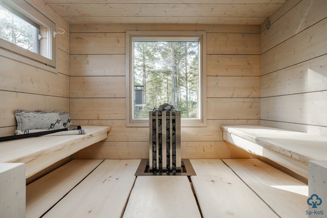 - Upeat käsin veistetyt lankkulauteet. Sähkökiuas Iki Monolight. Saunasta rauhoittava metsäinen maisema takapihan suuntaan. Lisäksi takapihalla tunnelmallinen holvisauna, jossa myös käsin veistetyt lankkulauteet. Kiukaana Harvian Legend-puukiuas.
