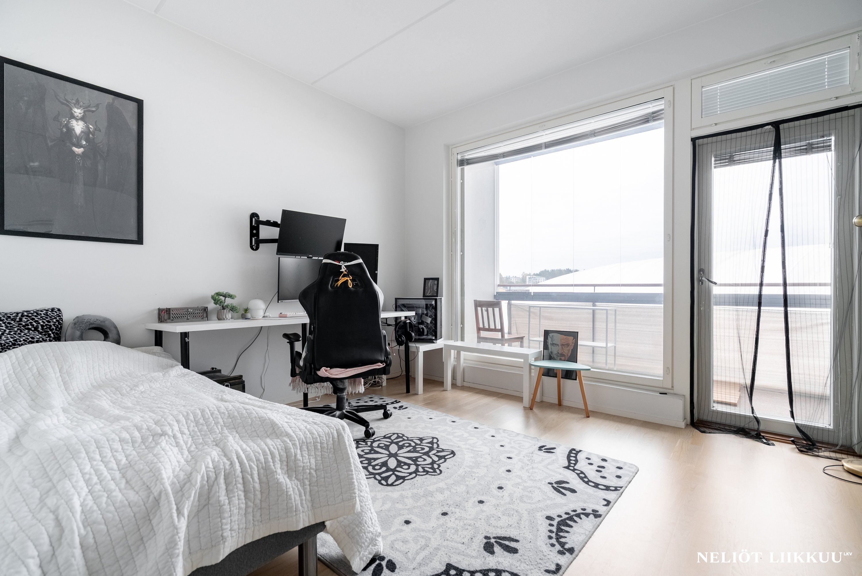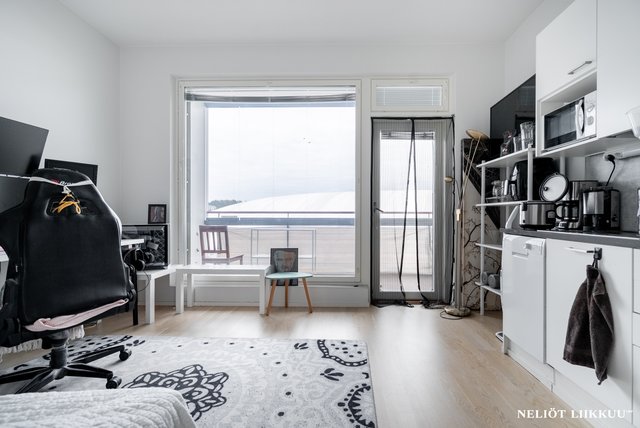 Asunto sijaitsee neljännessä kerroksessa, ja sieltä avautuu näkymät lasitetulta parvekkeelta. Avokeittiö on varustettu kaikilla tarvittavilla kodinkoneilla, ja kylpyhuoneessa on paikka pyykinpesukoneelle. Parvekelasituksen ansiosta voit nauttia ulkoilmasta ympäri vuoden.