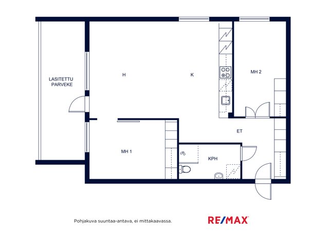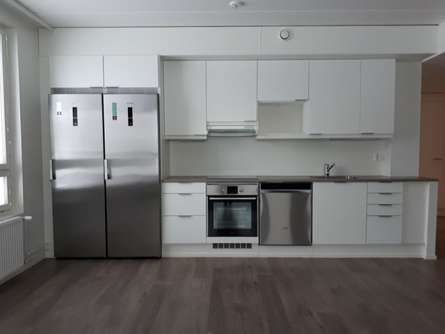 Asunnossa on kaksi makuuhuonetta, tilava olohuone sekä lasitettu parveke, joka toimii lisätilana ympäri vuoden. Keittiö on varustettu nykyaikaisin kodinkonein, kuten astianpesukoneella ja erillisellä pakastimella, mikä tekee arjesta sujuvaa. Kylpyhuoneessa on tilaa pesukoneelle, ja saunamahdollisuus taloyhtiössä kruunaa asumismukavuuden.