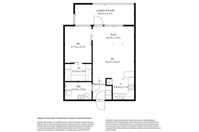 - Ei tarkistusmitattu. Pinta-ala voi siis olla edellä mainittua pienempi tai suurempi.