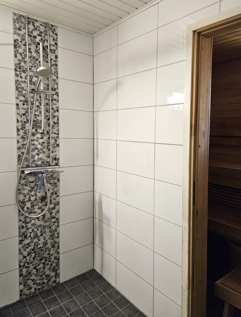 Laatoitettu kylpyhuone, oma sauna ja erillinen wc tuovat mukavuutta arkeen.