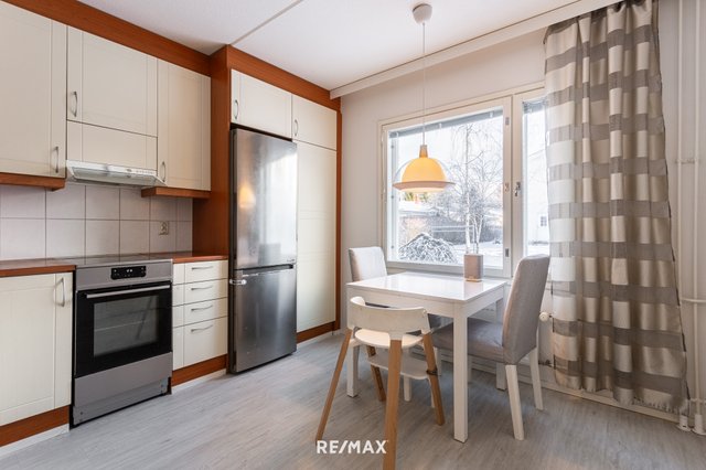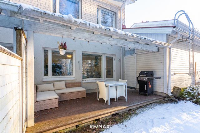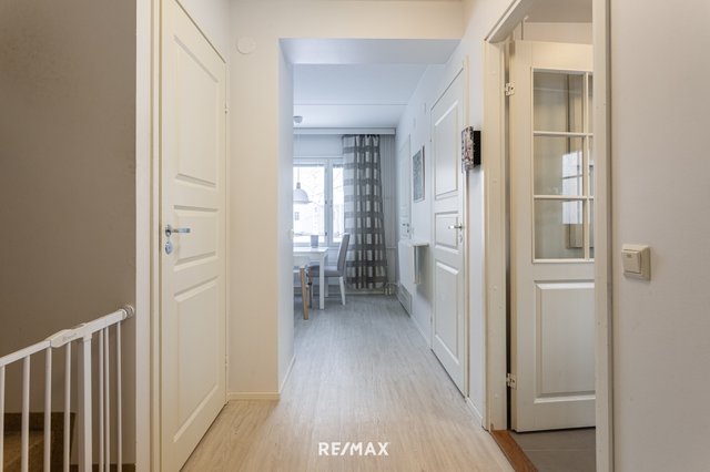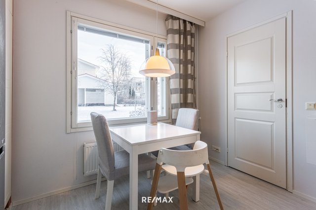 Kylpyhuone ja sauna on uusittu vuonna 2020 ja samana vuonna myös tuulikaappi, alakerran wc-tila ja kodinhoitohuone on maalattu ja lattiat laatoitettu. Kodinhoitohuoneeseen asennettiin lisäksi lattialämmitys sekä vaihdettiin isompi pesuallas ja tuulikaappiin asennettiin Askon peiliovinen vaatekaappi. Alakerran lattiamateriaaliksi vaihdettiin miellyttävä vinyylikorkki. Keittiössä on modernit laitteet, kuten induktioliesi ja vuonna 2020 uusittu astianpesukone. Länteen avautuva terassi tarjoaa rauhallisen paikan rentoutua.