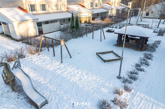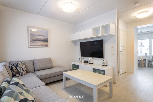 Tämä 83-neliöinen asunto on valmistunut vuonna 2005 ja se on pidetty hyvässä kunnossa. Tilat jakautuvat kahteen kerrokseen: yläkerrassa ovat makuuhuoneet ja saunaosasto, alakerrassa iso olohuone, keittiö ja käytännöllinen kodinhoitohuone. Asunnon kahdesta makuuhuoneesta suurempi on mahdollista jakaa kahdeksi erilliseksi huoneeksi, mikäli lisätilalle on tarvetta.