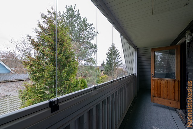 Toisesta makuuhuoneesta on kulku tilavalle lasitetulle parvekkeelle.