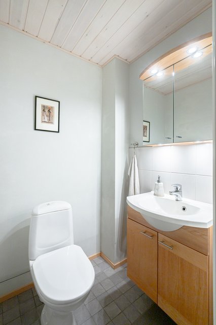 - WC 1: Laattalattia, seinät maalattu, bideesuihku, wc-istuin, allaskaappi, peilikaappi, lattialämmitys WC 2: Laattalattia, seinät tapetoitu, peilikaappi, allaskaappi, bideesuihku, wc-istuin