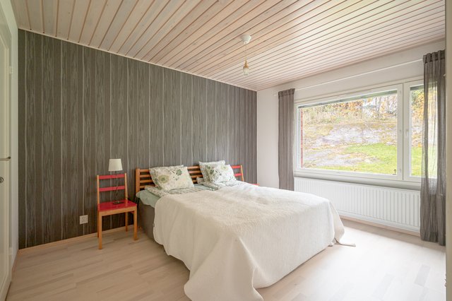 - Mh 1: Parkettilattia, seinät tapetoitu, liukuovikaapisto Mh 2 (master bedroom): Parkettilattia, seinät tapetoitu, liukuovikaappi. Makuuhuoneen yhteydessä vaatehuone, jossa on laminaattilattia ja seinät maalattu Mh 3: Parkettilattia, seinät tapetoitu, vaatekaapisto