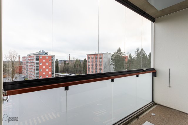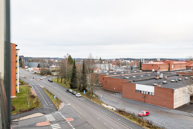 Maisemat ovat avarat ympäristöön näiltä korkeuksilta ja täällä on iso parveke, joka kesäaikaan jatkaa olohuonetta. Tilat ovat valoisat. Tämä sopii myös liikuntarajoitteiselle.