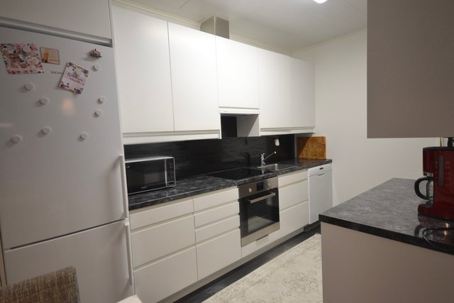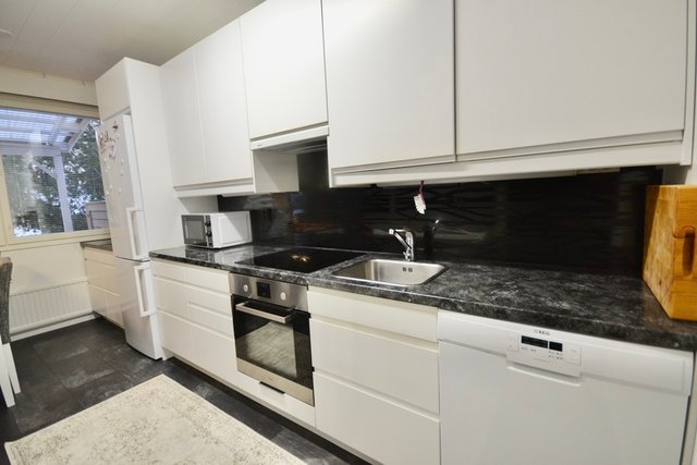 - Jääkaappipakastin, liesi, liesituuletin, ja astianpesukone