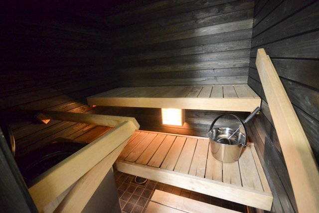 - Upea sauna Hetivalmiilla-kiukaalla ja led-valaistuksella.
