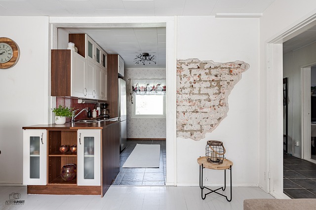 - Varustus: Jääkaappipakastin, lattialiesi (keraaminen), integroitu astianpesukone, kiinteät kaapistot ja kiinteät valaisimet. Materiaalit: lattiapinnat laatoitettu ja seinäpinnat tapetoitu ja osittain laatoitettu.