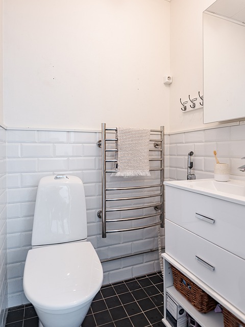 - Varustus: WC-istuin, bidee, allaskaappi, peilikaappi ja kiinteät valaisimet Materiaalit: Lattiapinnat laatoitettu ja seinäpinnat laatoitettu ja osittain maalattu