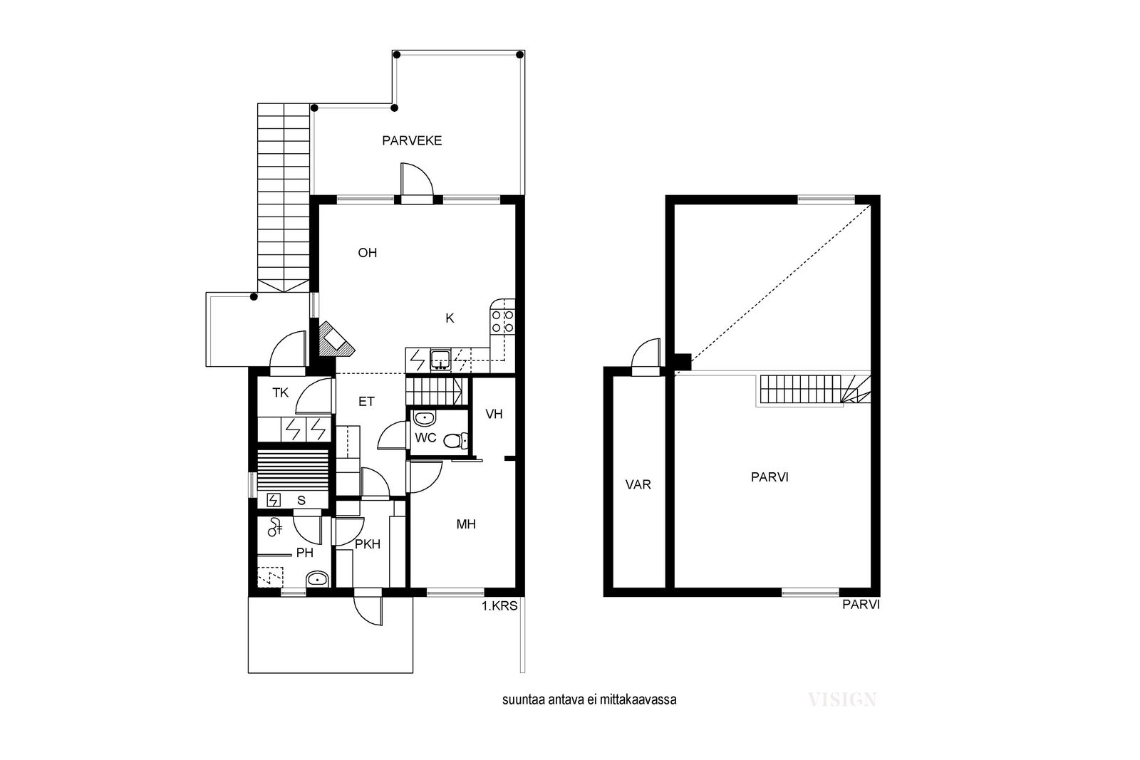- Pinta-alatiedot on saatu rakennuslupahakemuksesta eikä niitä ole tarkistusmitattu.