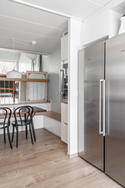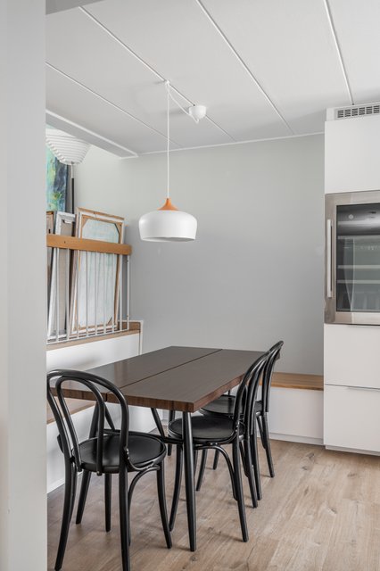 - Ruokailutilaan toteutettu mittatilauskalustus lisää käytännöllisyyttä ja ilmettä.