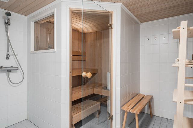 - VARUSTUS: Kiuas, Lauteet SEINÄT: Paneeli LATTIA: Laatta
