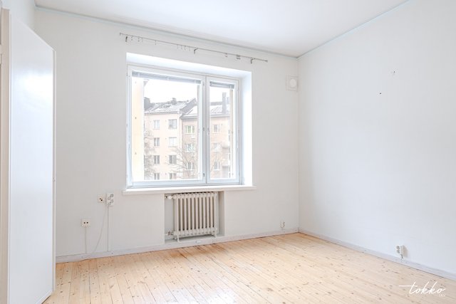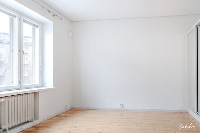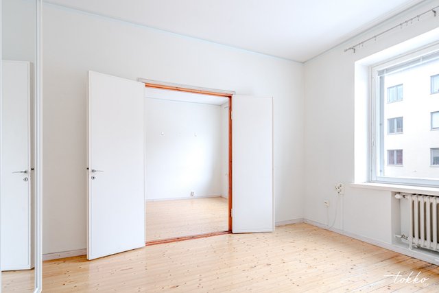- Yksi erillinen makuuhuone joka pariovilla yhteydessä olohuoneeseen. Ikkunat länteen Topeliuksenkadun suuntaan.