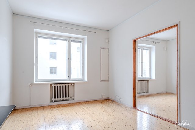 Heti vapaa 43m2 kaksio erinomaisella paikalla Taka-Töölössä Topeliuksenkadulla Sibeliuksenpuiston läheisyydessä. Asunto on tyydyttävässä, mutta täysin asuttavassa kunnossa. Kylpyhuone on viimeksi saneerattu putkiremontin yhteydessä vuonna 2003. Asunnosta löytyy alkuperäiset lautalattiat ja kaikki alkuperäiset ovet ovat tallella. Keittiö on kompakti ja sen saa näppärästi piiloon katseilta niin ikään alkuperäisten Töölöläisovien ansiosta. Asunnossa on isot ikkunat länteen Topeliuksenkadulle ja erinomaisesti säilytystilaa mm. kahden varaston ansiosta.
