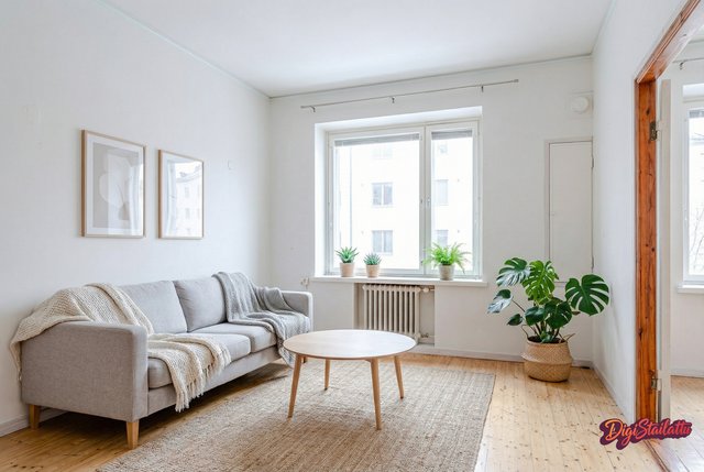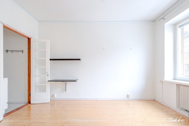 - Avara olohuone jonka päädyssä pieni keittiö jonka saa ovien taakse kätevästi piiloon. Ikkuna länteen Topeliuksenkadun suuntaan.