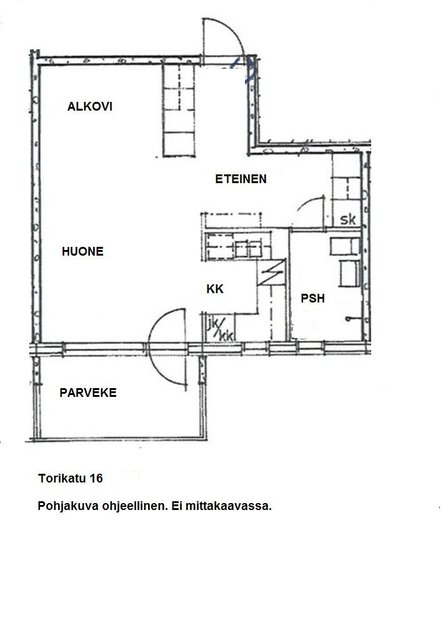 - Ei tarkistusmitattu. Pinta-alat saattavat tämän ikäisissä kohteissa (yhtiö rekisteröity ennen 01.01.1992) poiketa olennaisestikin asuinrakennusten nykyisten mittaustapojen ja standardien (SFS 5139) mukaan laskettavasta asuintilojen pinta-alasta. Pinta-ala voi siis olla edellä mainittua pienempi tai suurempi.