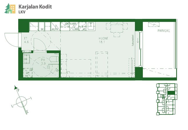 - Parvekkeen ilmansuunta