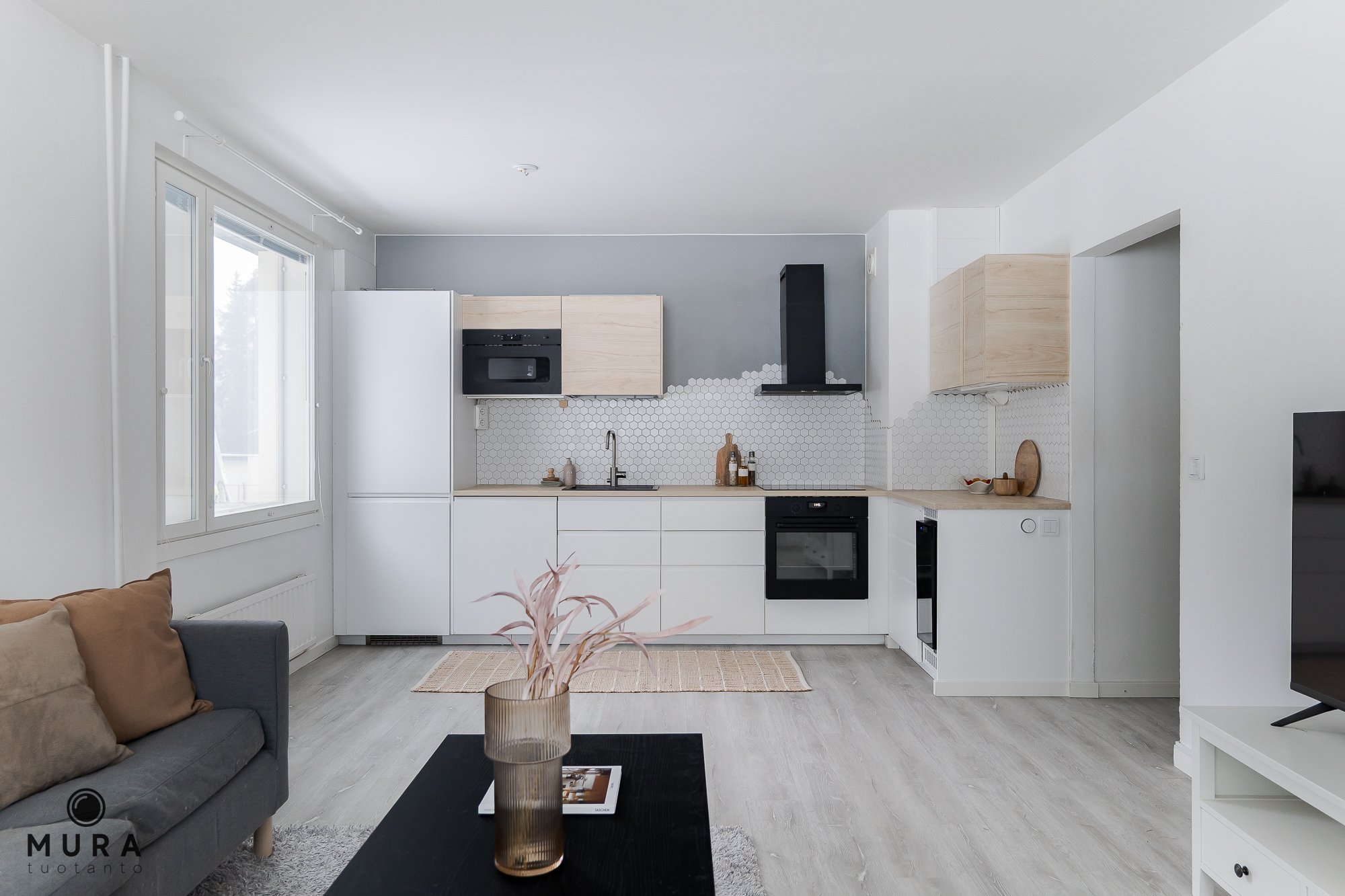- Avara ja valoisa olohuone.