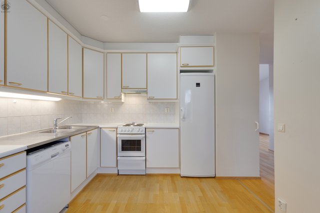 - Jääkaappi, uuni, liesi, liesituuletin, ja astianpesukone