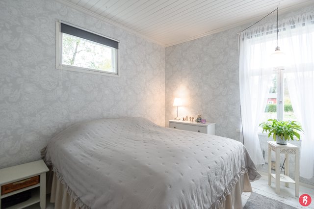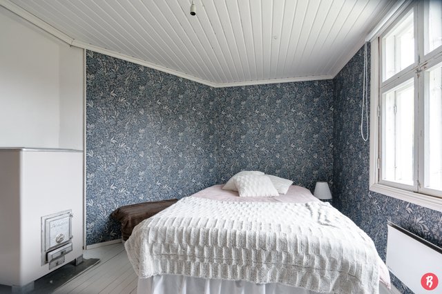 Talon tilat ovat käytännölliset ja kodikkaat. Alakerran keittiössä on pieni kellari, joka tarjoaa lisäsäilytystilaa. Olohuoneessa on varaava takka, joka luo lämpöä ja tunnelmaa viileisiin iltoihin. Yläkerrassa on kaksi makuuhuonetta, joissa on tapetoidut seinät ja puolipaneelit. Kylpyhuone on moderni ja varusteltu kaikilla tarvittavilla mukavuuksilla.