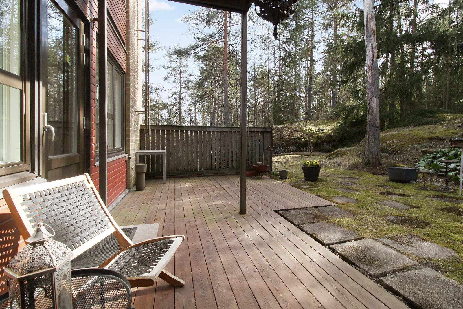 Kodin kruunu tai piste iin päälle on kyllä viihtyisä ja suojainen piha. Pihalla on erittäin mukava viettää vaikka kesäistä iltapäivää grillaillen ja chillaillen, ottaa vain rennosti. Lähivirkistysmetsä löytyy siis oman pihan vierestä.