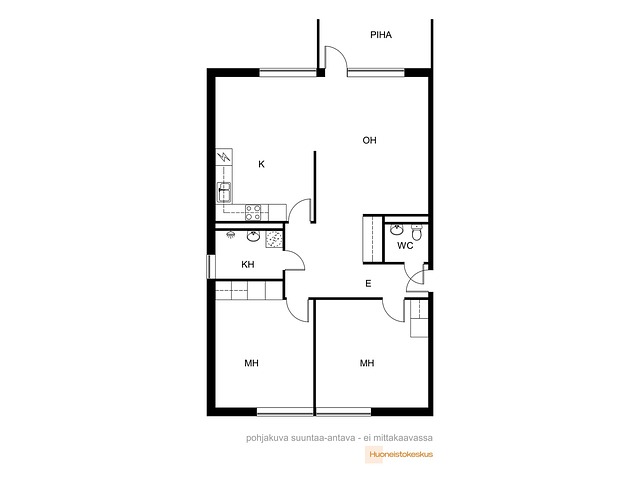 Tämä ensimmäisen asuinkerroksen koti on varsin toimivapohjainen, huoneet ovat tilavia ja avaria. Olohuone yhdistyy ruokailutilan kautta keittiöön, joka on toiminnoiltaan varsin mallikelpoinen suoritus. Makuuhuoneet joita on kaksi kappaletta ovat tarpeeksi tilavia ja erillinen wc eteisessä lisää kodin toiminnallisuutta. Tämä koti on oivallinen ja sopii hyvin moneen tilanteeseen ja tarpeeseen.